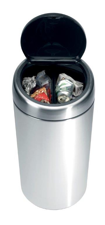 Ronde afvalbak met touchdeksel en twee kunststof binnenemmers voor afvalscheiding (2x 20 ltr). , VB 401084, L 365 b 365 h 755 ø 370, mm