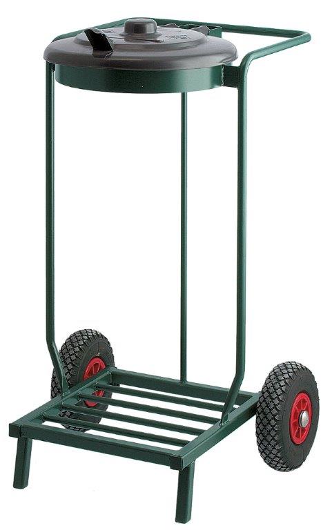 Afvalzakhouder met grijs kunststof deksel voorzien van twee luchtbanden en zakklem. , VB 204310, L 630 b 520 h 1000, mm
