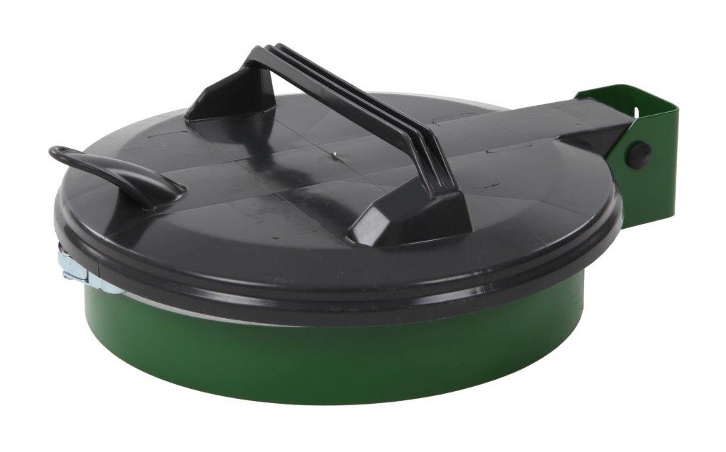 Metalen wandzakhouder met grijs kunststof deksel en zakklem met sluiting. , VB 330000 h 100 ø 400, mm
