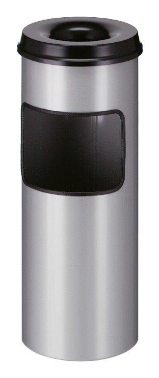 Ronde metalen as-papierbak met zwarte vlamdovende top. Voorzien van zwarte inzetbak. Inclusief doofzand. , VB 150195 h 642 ø 243, mm