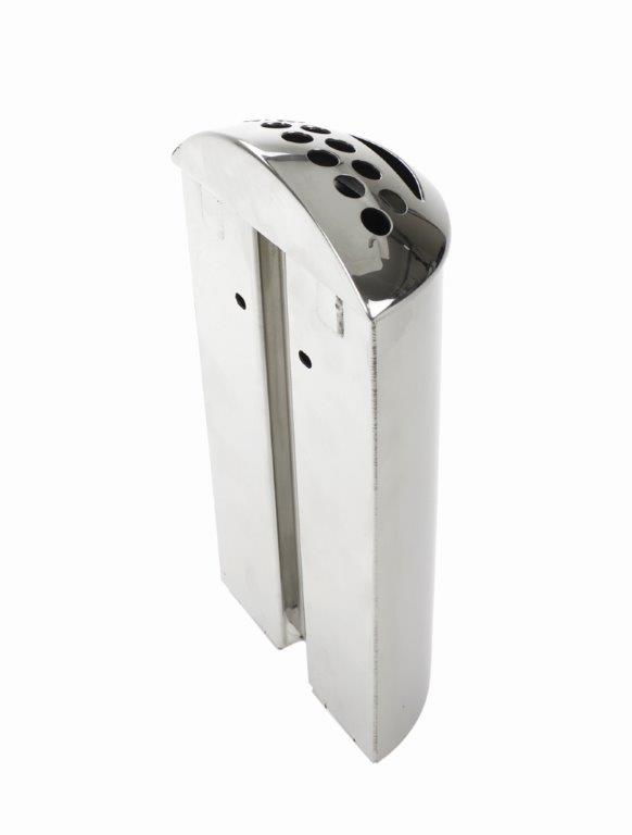 Fraai vormgegeven asbak van RVS voor plaatsing in een BINsystem aluminium profielstaander. , VB 713530, L 70 b 150 h 320, mm
