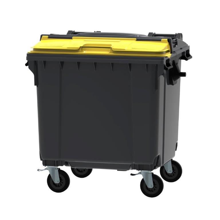 Container 1100 ltr split deksel , grijs, geel, L 1260 b 1073 h 1375, mm