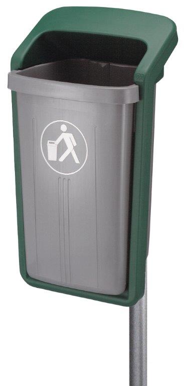 Afvalbak van UV-bestendige HDPE kunststof voor wand- of paalbevestiging. , VB 520000, L 460 b 390 h 845, mm