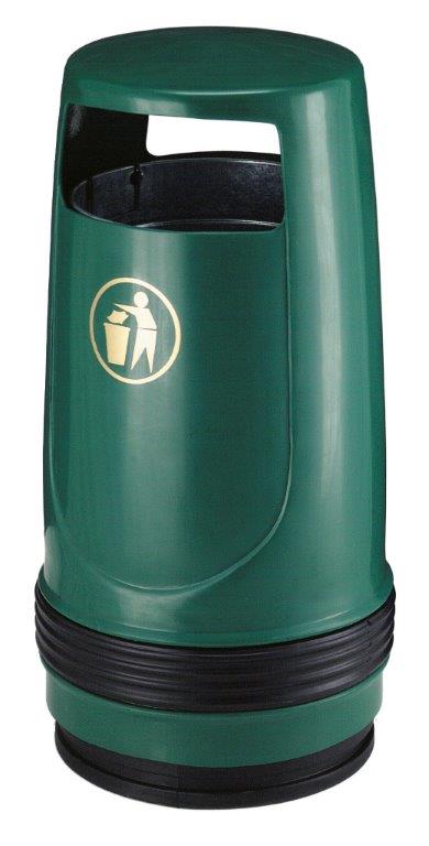 Kunststof, UV-bestendige afvalbak met metalen binnenemmer en 2 inworpopeningen. Voorzien van sluitmechanisme dat het gemak van het legen combineert met een maximale veiligheid. Inclusief bevestigingsmateriaal voor vloerbevestiging. , VB 600000, L 490 b 490 h 1000 ø 490, mm