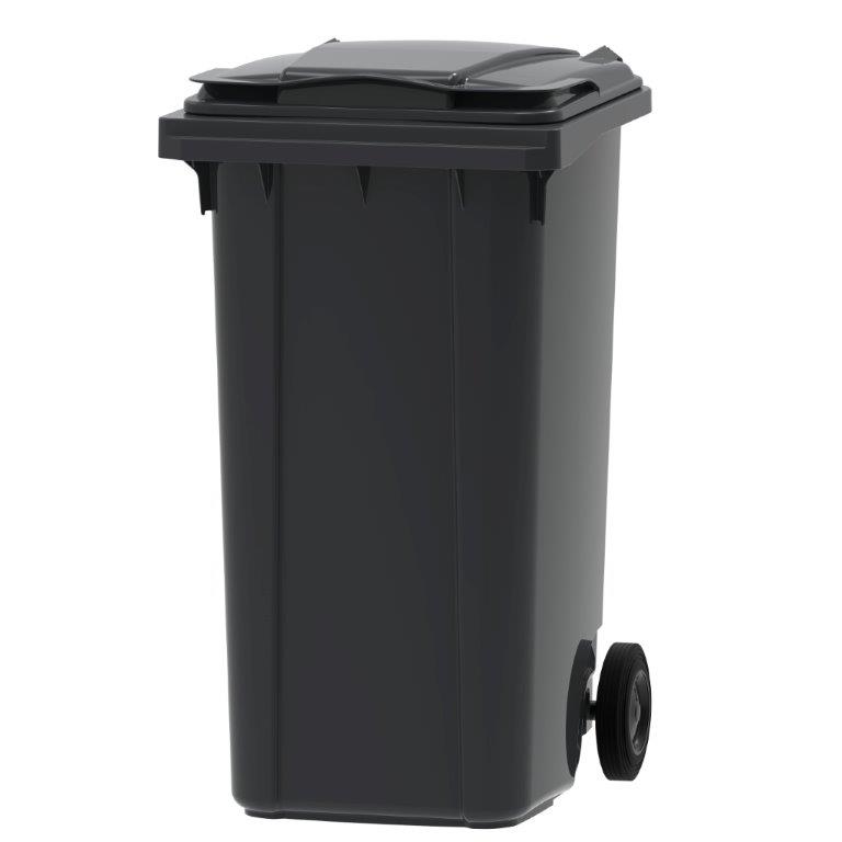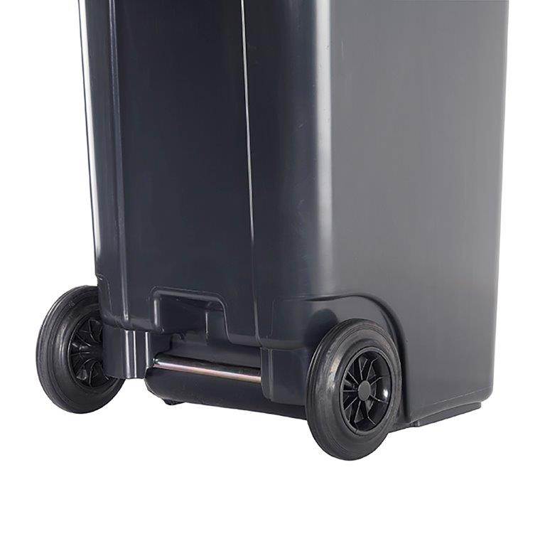 Rolcontainer Kliko van UV-bestendig hoogwaardig kunststof (HDPE) geschikt voor intensief gebruik. Voorzien van twee solide, rubberen wielen (200 mm) en ergonomische handgrepen aan de achterzijde voor het gemakkelijk verrijden. Het deksel heeft ergonomische handgrepen aan de voorzijde en kan volledig opengeklapt worden. Beschikt over een EN 840 certificering en is conform de kwaliteitseisen van RAL GZ 951/1. Verkrijgbaar in diverse kleuren. , VB 240000, L 737 b 583 h 1079, mm