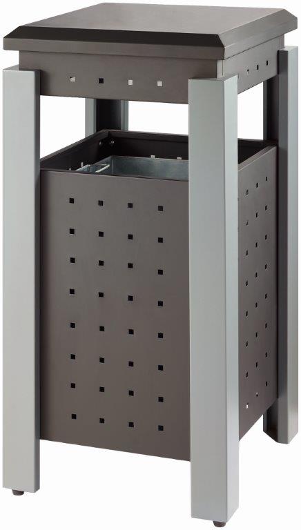 Afvalbak van gepoedercoat staal met afdak en voorzien van metalen binnenbak. , VB 667857, L 400 b 400 h 800, mm