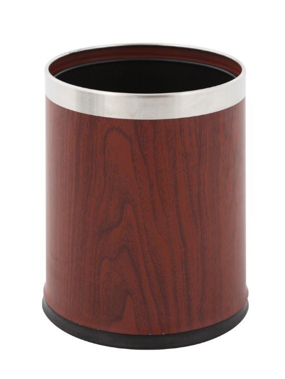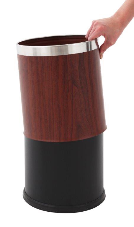 Dubbelwandige ronde papierbak aan de buitenzijde van staal met houtprint en met mat RVS rand. Stalen binnenzijde zwart gepoedercoat. , VB 650132 h 270 ø 225, mm