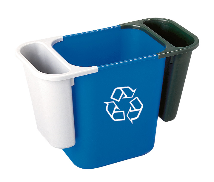 Rechthoekige afvalbak 26,6 ltr, Rubbermaid , blauw, recyclingsymbool, L 366 b 260 h 381, mm
