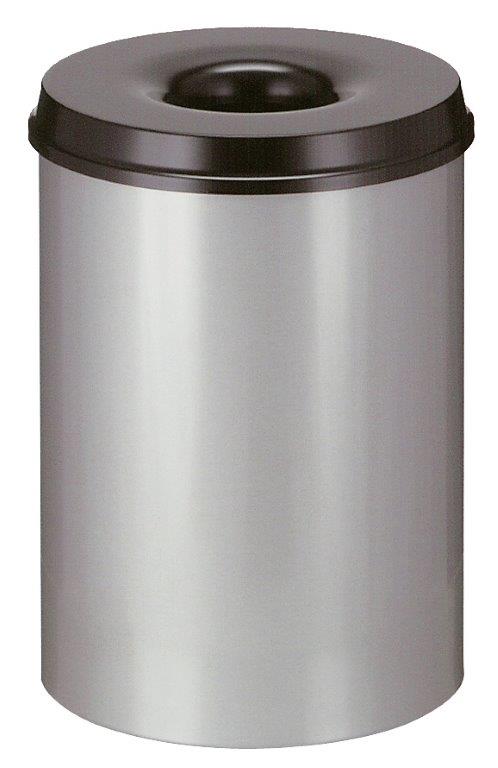 Vlamdovende papierbak 30 ltr , aluminiumgrijs, zwart, h 470 ø 335, mm