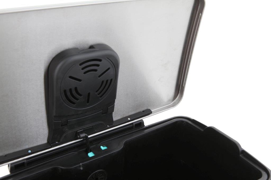 Stijlvolle rechthoekige pedaalemmer met extra breed pedaal, kunststof binnenemmer, gedempt deksel en stay-open functie. Aan de binnenzijde van het deksel is ruimte voor een carbonfilter om geurtjes te voorkomen. Fingerprint Proof. , VB 926850, L 345 b 500 h 650, mm