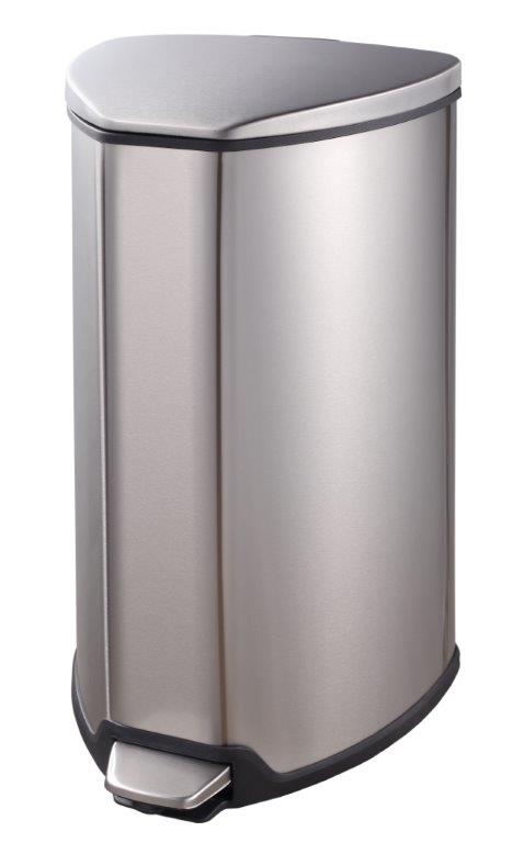 Opvallende, driehoekige pedaalemmer voorzien van kunststof binnenemmer en gedempt sluitend deksel. , VB 920915, L 293 b 272 h 512, mm