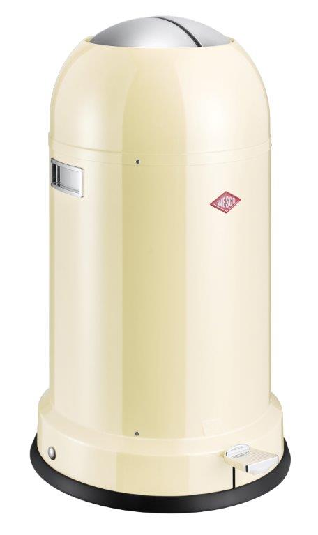 Retro uitvoering van de Wesco klassieker Kickmaster. Het ingebouwde dempersysteem zorgt voor het geruisloos sluiten van de kleppen (deksel). De hygiënische kunststof binnenemmer is eenvoudig te reinigen. Voorzien van bodemring welke vlekken voorkomt en anti-slipfunctie heeft. , VB 183631 h 690 ø 410, mm