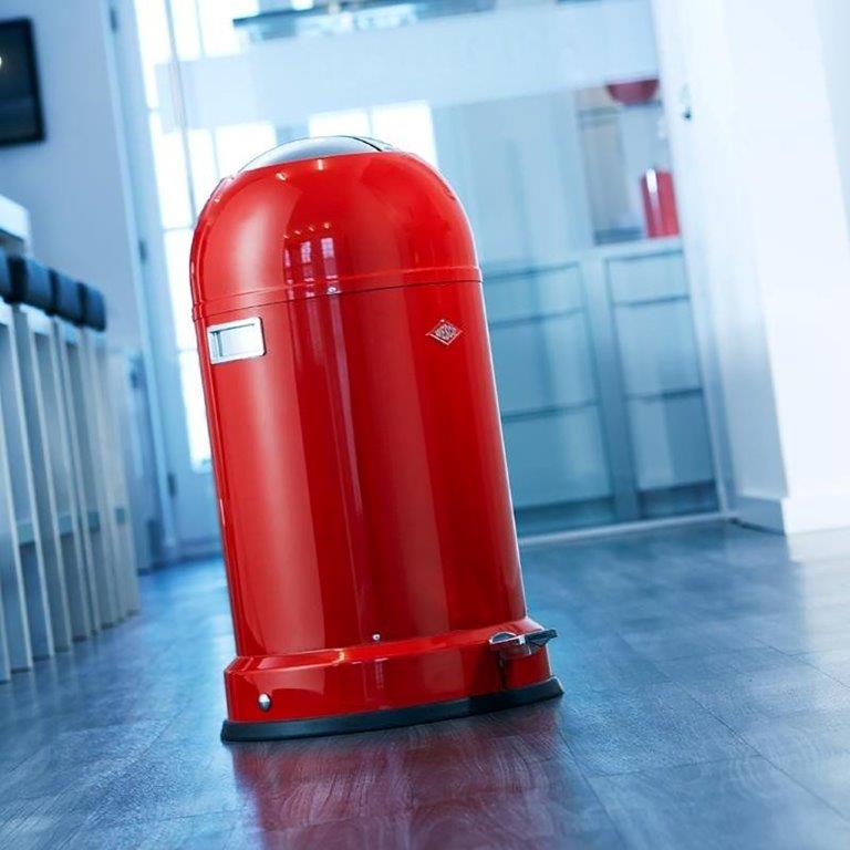 Retro uitvoering van de Wesco klassieker Kickmaster. Het ingebouwde dempersysteem zorgt voor het geruisloos sluiten van de kleppen (deksel). De hygiënische kunststof binnenemmer is eenvoudig te reinigen. Voorzien van bodemring welke vlekken voorkomt en anti-slipfunctie heeft. , VB 183631 h 690 ø 410, mm