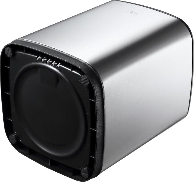 Vierkante afvalbak van mat RVS met open inworpopening aan de bovenzijde. Voorzien van kunststof binnenemmer en fingerprint proof coating. Door het afnemen van de losse top is de afvalzak eenvoudig te wisselen. De rubberen doppen aan de onderzijde beschermen en houden de afvalbak op zijn plaats. , VB 908809, L 240 b 240 h 338, mm