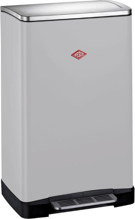 Pedaalemmer met extra breed RVS voetpedaal. Het ingebouwde dempersysteem zorgt voor het geruisloos sluiten van het RVS deksel. Het deksel kan tevens in geopende positie vastgezet worden. De binnenemmer is voorzien van een zakhoudersysteem zodat de afvalzakken netjes op hun plaats en uit het zicht blijven. , VB 381401, L 345 b 405 h 650, mm
