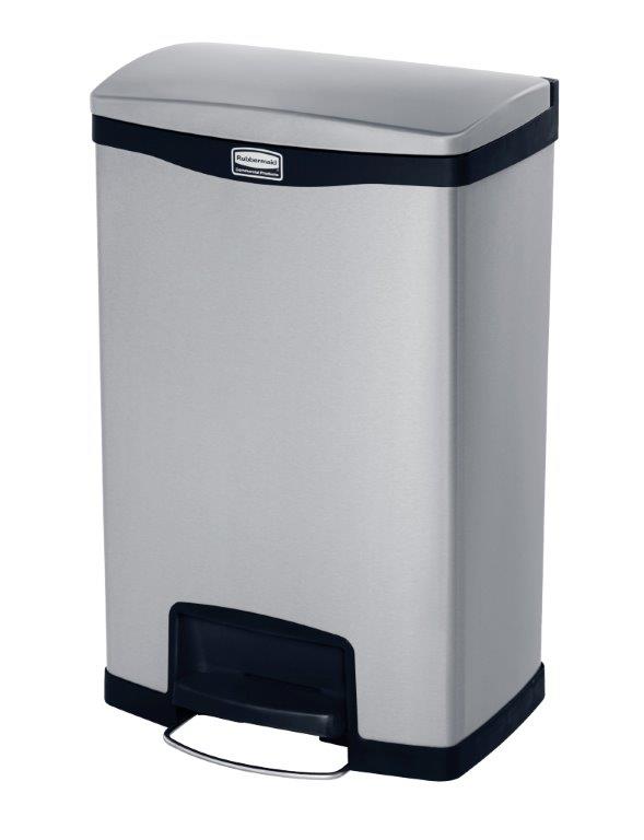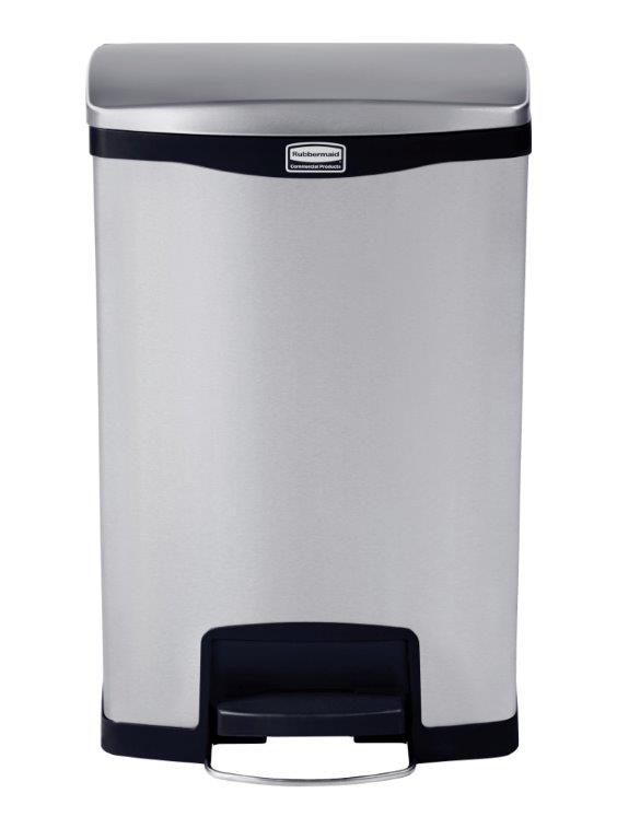 Slim Jim Step On container Front Step RVS 50 ltr, Rubbermaid , mat RVS, zwart, L 539 b 419 h 807, mm