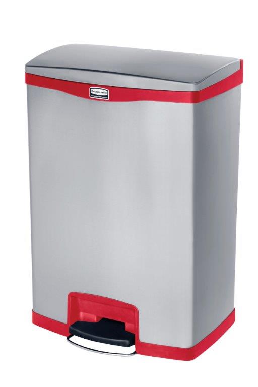 Slim Jim Step On container Front Step RVS 90 ltr, Rubbermaid , mat RVS, rood, L 622 b 483 h 892, mm