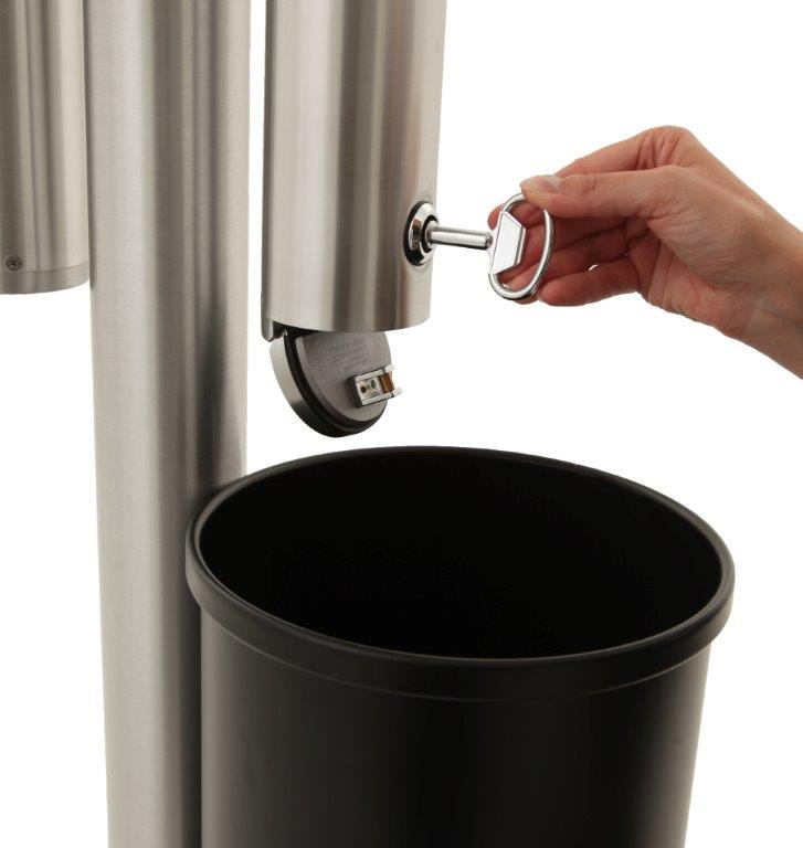 Design asbakpaal van hoogwaardige kwaliteit. Volledig gemaakt van corrosiebestendig aluminium met sterk kunststof regendak. Aan de asbakpaal zijn twee asbakken gemonteerd. De asbakken kunnen eenvoudig geleegd worden via de onderzijde door opening van het driekantslot. De sterke aluminium voetplaat kan aan de vloer bevestigd worden. Wordt geleverd inclusief montagemateriaal, driehoeksleutel en schoonmaakborsteltje. , VB 659951, L 300 b 370 h 1380, mm
