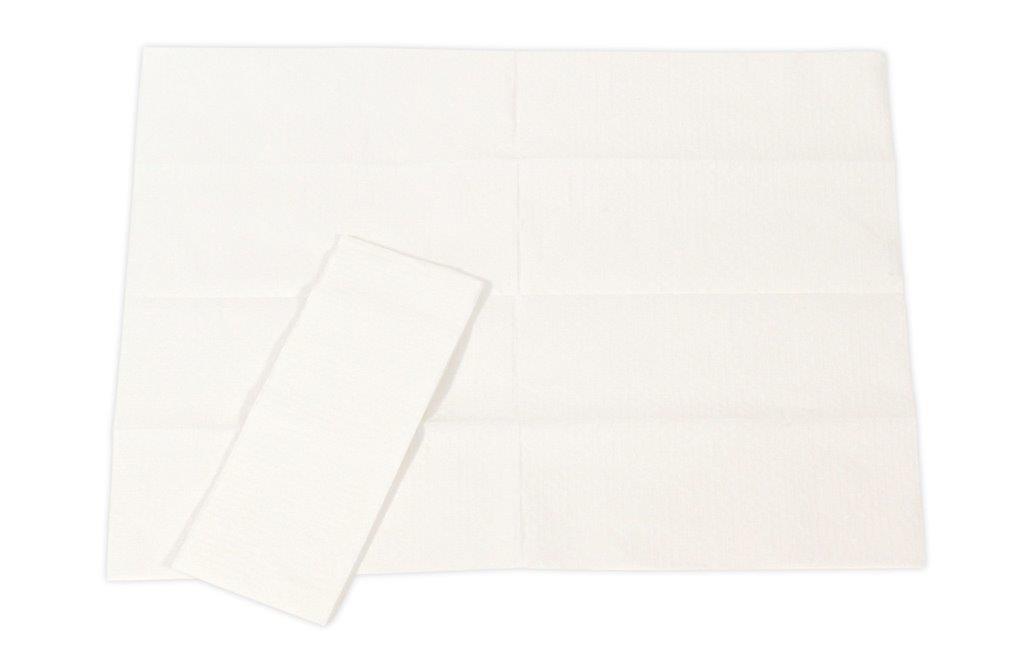 Witte papieren beschermdoekjes voor de baby verschoontafel horizontaal (VB 007818) en verticaal (VB 007819). 320 beschermdoekjes per doos, per 40 in een dispenser. , VB 007817-88, L 356 b 318 h 152, mm