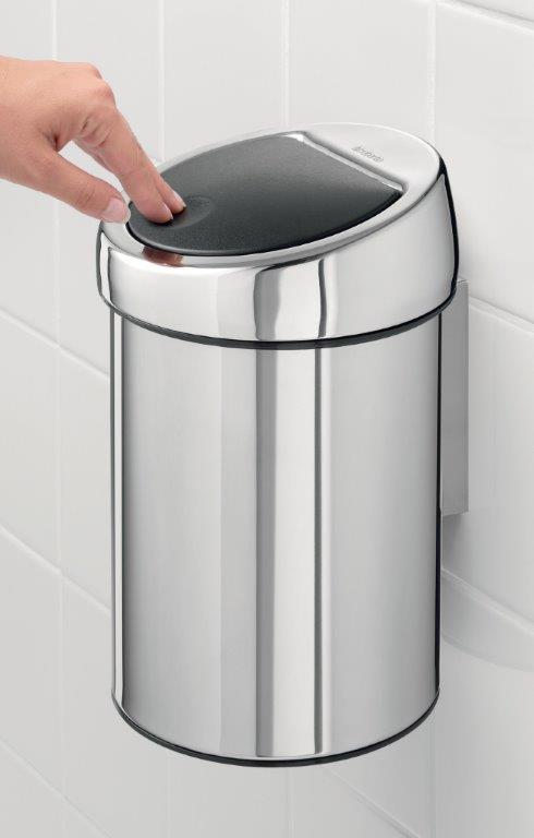 Wandafvalemmertje Touch bin, Brabantia , RVS, L 184 b 180 h 280 ø 180, mm