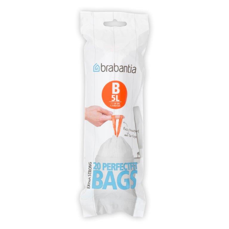 Afvalzak 5 liter met trekbandsluiting (B), Brabantia , wit b 335 h 340, mm