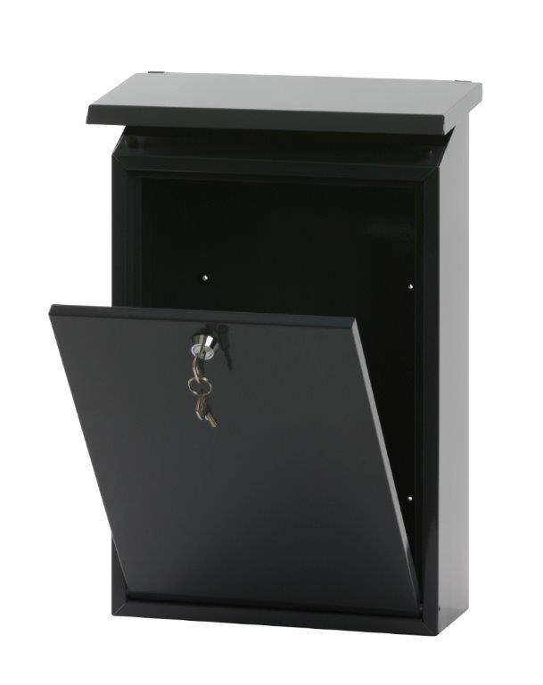 Brievenbus met cilinderslot voor wandbevestiging. De inworpopening (25 x 4 cm) zit onder de klep zodat de post beschermd is. , VB 440070, L 120 b 270 h 400, mm
