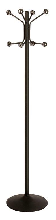 Kapstok van gelakt metaal met 8 haken afgezet met kunststof knoppen. Op verzwaarde metalen voet. Gewicht 9 kg. , VB 963060 h 1730 ø 410, mm