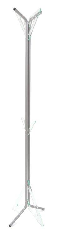 Tijdloze metalen kapstok waarbij de voet, top en parapluhouder zijn afgewerkt met transparant kunststof. Gewicht 6,5 kg. , VB 963390 h 1660 ø 410, mm