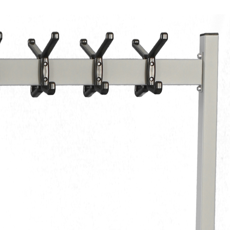 Garderoberek met 22 dubbele kunststof haken (11 aan iedere zijde). Makkelijk verrijdbaar. Het garderoberek wordt ongemonteerd geleverd. , VB 718092, L 550 b 1400 h 1700, mm