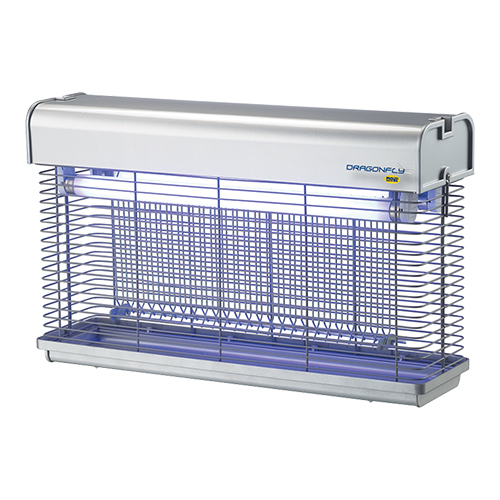 insektenverdelger FLY 2x20W, de apparaten zijn vervaardigd uit slagvast kunststof materiaal dat voor de perfecte isolatie zorgt tussen de interne onder spanning staande delen en de buitenzijde van het apparaat. Afmetingen (h)32x69x14 cm 230 volt 45 watt
