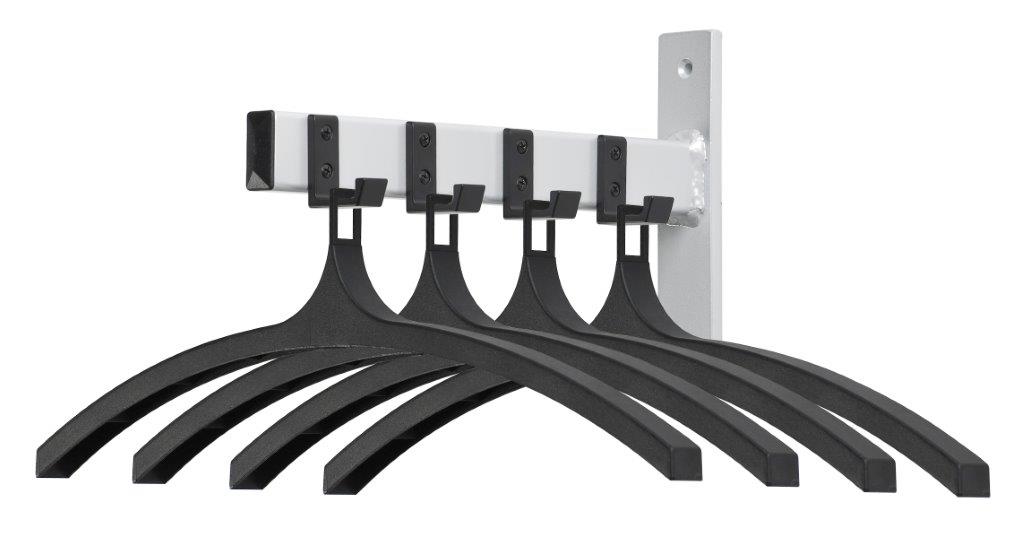 Wandgarderobe HIQ 4 hangers , zwart, aluminiumgrijs, L 320 b 50 h 200, mm