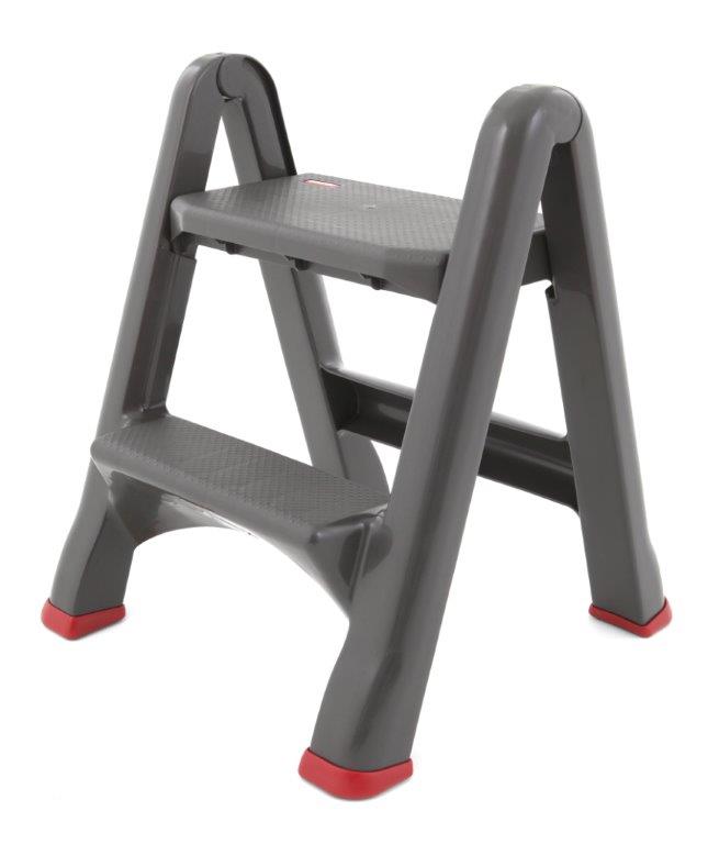 Stabiel trapje van kunststof met rubberen rode voetjes en antislip treden. Inklapbaar en eenvoudig op te bergen. , VB 008605, L 630 b 475 h 150, mm