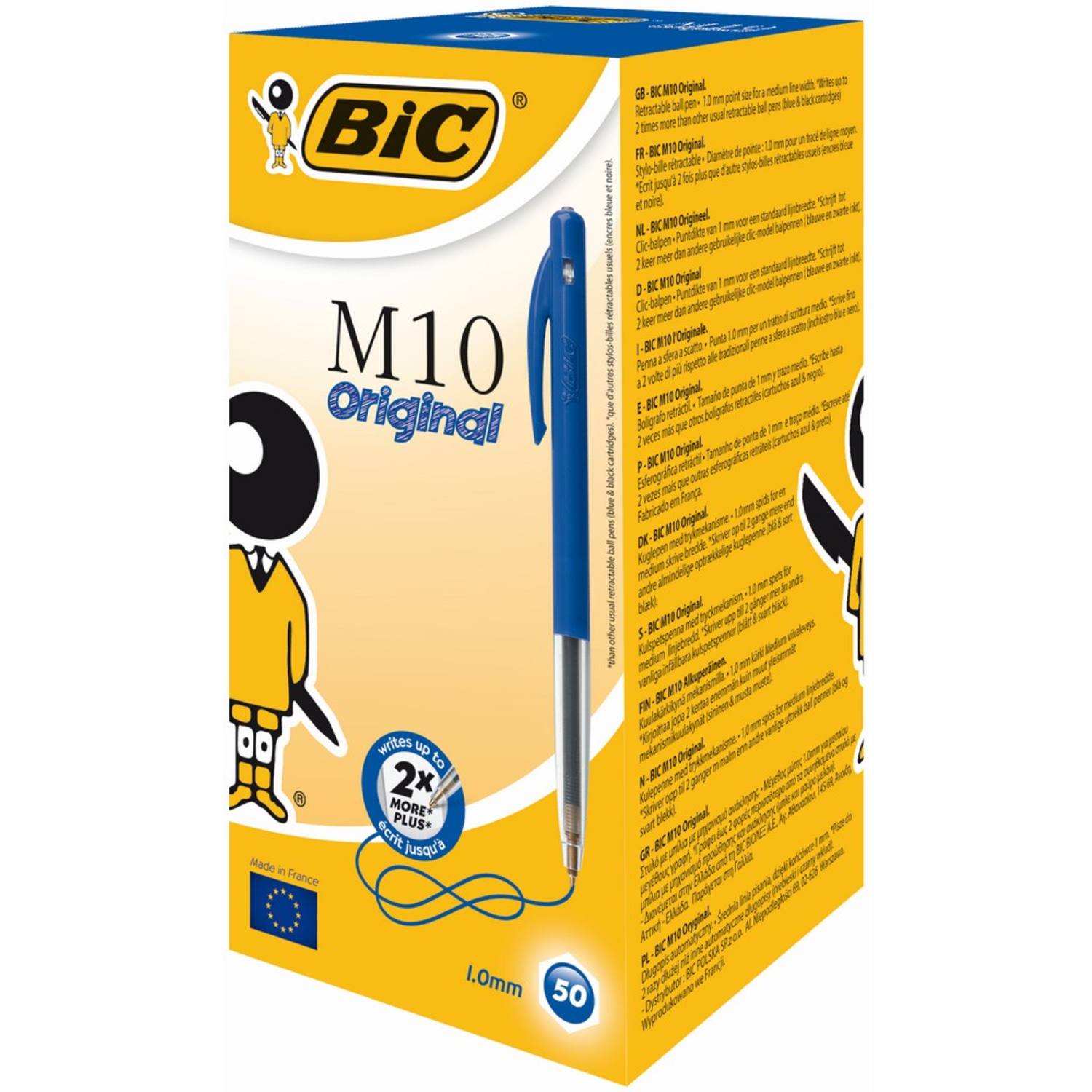 Pen blauw, BIC M10, clik original, 50 Stuks