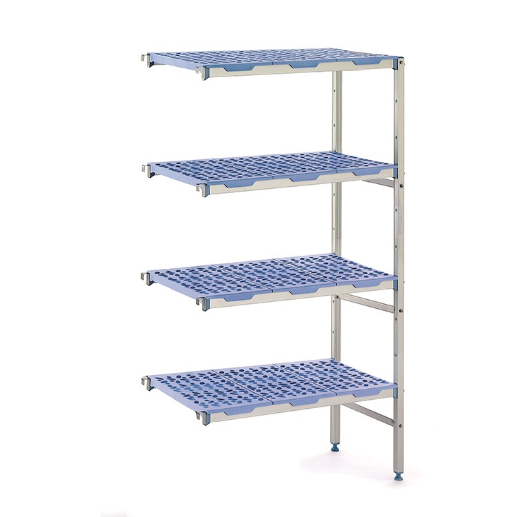 De rekken zijn voorzien van uitneembare en vaatwasserbestendige polypropyleen schappen en hebben geanodiseerde aluminium staanders en liggers.