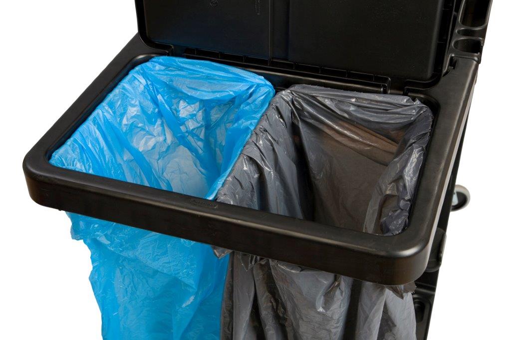 Dubbele afvalzakhouder van staal voor de schoonmaakkarren en hotelwagens. , VB 006173-DBH, L 310 b 20 h 108, mm