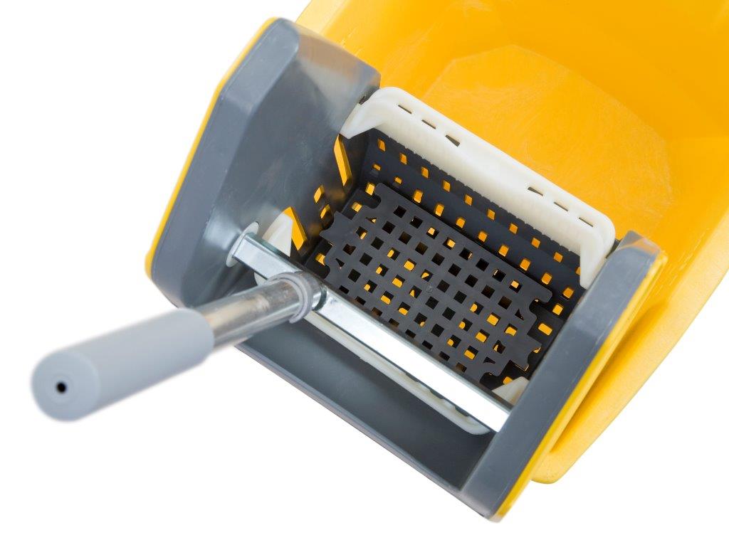Zeer efficiënte wringer van duurzaam kunststof. Ideaal voor strengenmoppen tot 500 gram. Geschikt om te gebruiken in combinatie met Sani Duo emmer. , VB 000620, L 380 b 263 h 213, mm