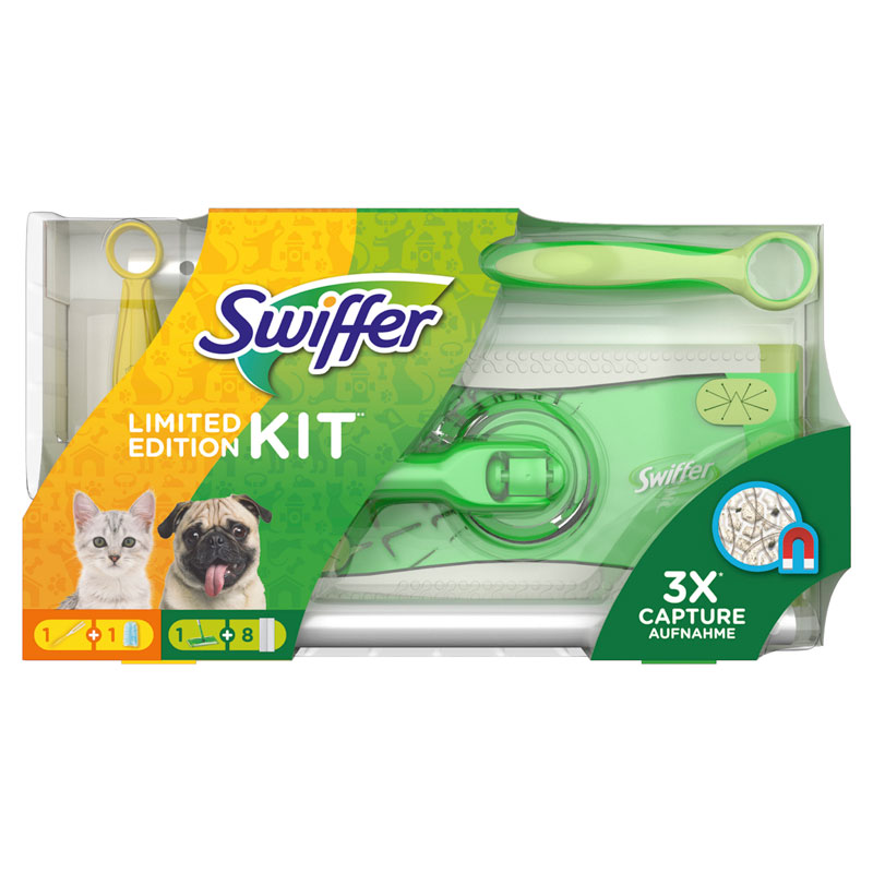 Swiffer Vloerreiniger en Duster-pakket. Swiffer Vloerreiniger vangt vuil, stof en haar op elke vloer en elk oppervlak in je huis op en houdt het vast, veel beter dan een gewone bezem. De dikke, droge stofdoekjes volgen het oppervlak van je vloeren en voegen om vuil, stof en haar beter op te vangen en vast te houden dan een bezem. Dankzij de dikte en het specifieke patroon van de stofdoekjes en hun antistatische werking vangen ze 3 x meer stof en haar op in vergelijking met een traditionele bezem. De Swiffer Dusters vangen stof, haar en allergenen van huisstofmijten, katten en honden en houden het vast dankzij de duizenden licht gecoate pluizige vezels. De Swiffer schoonmaakdoekjes beschikken over unieke vezels die van vorm veranderen. Hierdoor kun je bij de moeilijkst bereikbare plekjes komen om van bijna elk oppervlak stof en haar te verwijderen zonder het in huis te verspreiden. Ze zijn vooral handig om het haar van je huisdieren, dat constant uitvalt, te verwijderen of als je last hebt van een stofallergie. De Swiffer-bezem kan worden gebruikt op elk hard oppervlak, zoals: al dan niet geboend linoleum, vinyl, keramische tegels en behandelde houten vloeren.