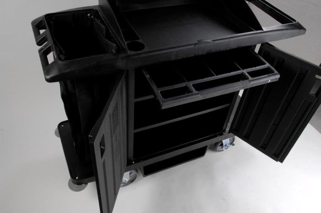 Materiaallade met verdelers en slot voor het handig en veilig opbergen van artikelen. Geschikt voor bevestiging aan de hotelwagens (VB 006189 of VB 006190). Diepte 7,5 cm. , VB 006199, L 438 b 95 h 664, mm
