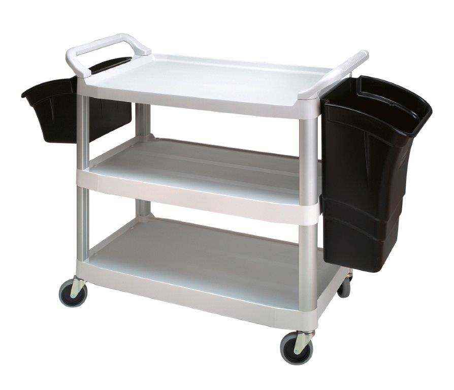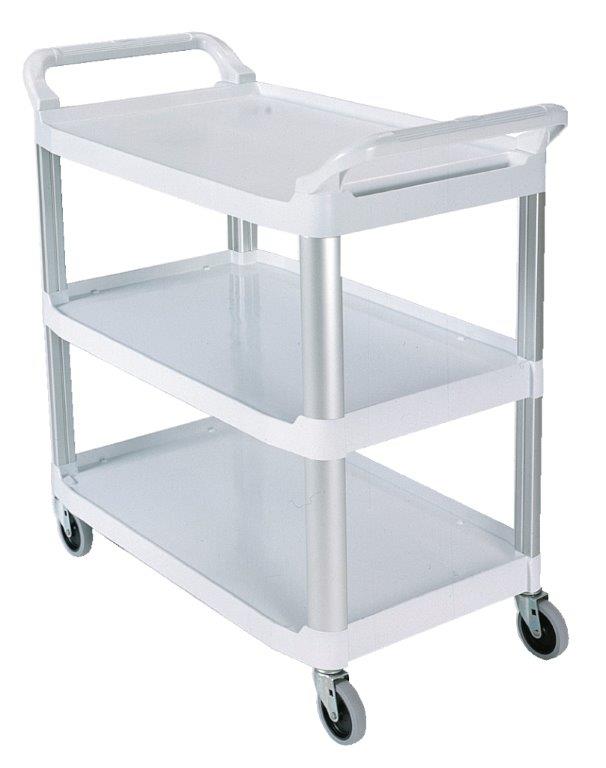 Open materiaalwagen met brede, krasbestendige kunststof schappen en ergonomische handgrepen. Voorzien van 4 zwenkwielen. Laadvermogen tot 135 kg, maximaal 45 kg per schap. , VB 004091, L 907 b 521 h 372, mm