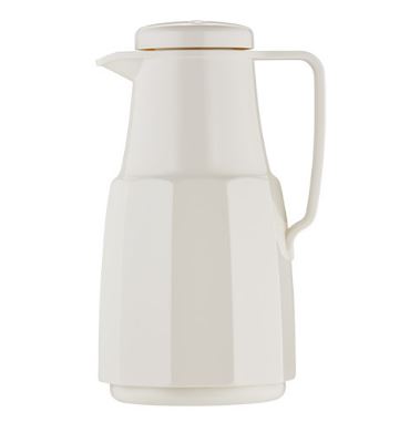 wit, kunststof buitenmantel, glazen binnenpot.