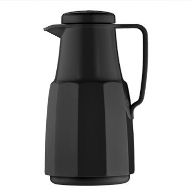 zwart, kunststof buitenmantel, glazen binnenpot.