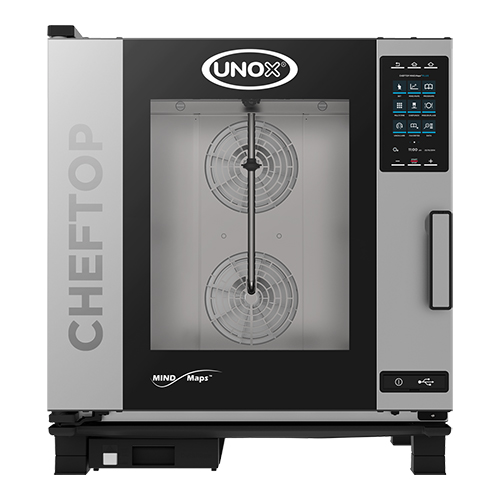 Unox, cheftop, mind maps, gas, de oven heeft een Master Touch bedieningsscherm, hiermee kunnen gerechten handmatig bereid worden, maar het geeft ook toegang tot een lijst met bereidingscycli die eerder zijn opgeslagen of kunnen er nieuwe recepten gemaakt worden, die vervolgens opgeslagen kunnen worden, afstand tussen de roosters is 67cm, de oven heeft Adaptive.Cooking, Multi.Time dat stelt u in staat 10 verschillende producten tegelijk te bakken, Mise.en.Place waardoor alle gerechten op dezelfde tijd klaar zijn, Dry.Maxi voor de ideale luchtvochtigheid, Steam.Maxi voor perfect stomen, Air.Maxi voor een perfecte hetelucht circulatie, automatische reinigingssysteem Rotor.Klean en het Auto.Pure-antikalkfilter, wordt geleverd zonder roosters of bakplaten, capaciteit 7x (1/1GN), VERMOGEN 15000W.