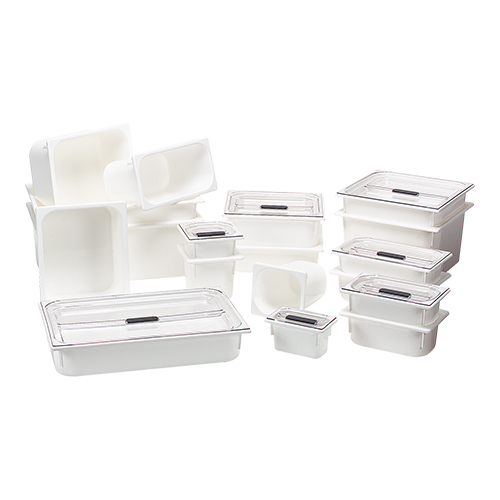 polypropyleen, stapelbaar, hoogwaardig kunststof, deze bakken verdragen temperaturen van -30°C tot +100°C, absoluut reuk- en smaakvrij, bestand tegen de normale huishoud zuren, oliën en vetten, UTZ.