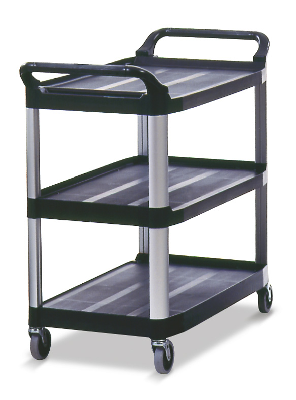 Open materiaalwagen met brede, krasbestendige kunststof schappen en ergonomische handgrepen. Voorzien van 4 zwenkwielen. Laadvermogen tot 135 kg, maximaal 45 kg per schap. , VB 004091, L 907 b 521 h 372, mm