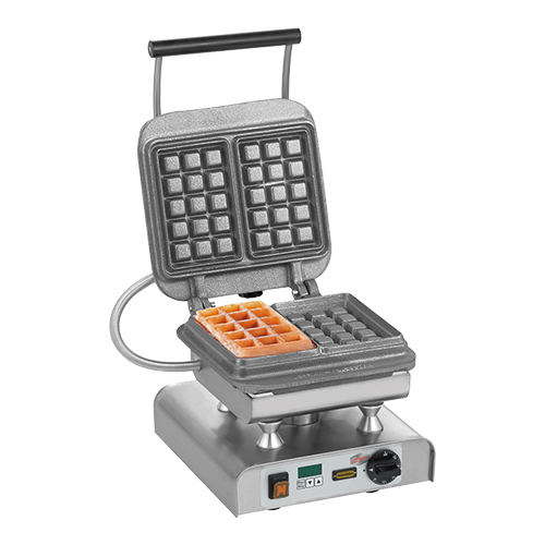 Neumarker wafel apparaat multifunctioneel. type single, d.m.v. eenvoudig te verwisselen sets gietijzeren wisselplaten (zijn niet inclusief, platen los leverbaar) ontstaat een uniek baksysteem, voorzien van elektronische tijdklok met geluidssignaal, thermostaat en verlichte hoofdschakelaar. Losse platen voor o.a.: stroopwafels, brusselse wafels, crepes, hartwafel en wafel op stok. Afmetingen: (h)30x30x32 cm. 220 volt. 2200 watt