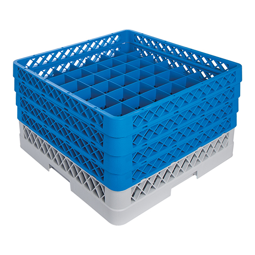 de robuuste vaatwaskorven verkleinen de kans op breuk, zijn ruimtebesparend en hebben extra grote maaswijdte, vervaardigd van speciaal polypropyleen, de open opzetrand wordt gebruikt voor meer onderlinge afstand, wanneer volle rekken op elkaar worden gestapeld.