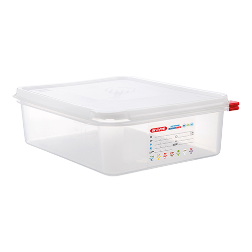 Gastronorm voedseldozen, Araven,luchtdicht afsluitbaar door uniek dubbel afsluitsysteem, geschikt voor vriezer -40°C en magnetron +90°C ( plaatsen zonder deksel ), vaatwasmachine bestendig, wordt compleet geleverd met Colorclip product coderingsset volgens de HACCP normen (rood, geel, groen en blauw). De dozen worden geleverd inclusief deksel.