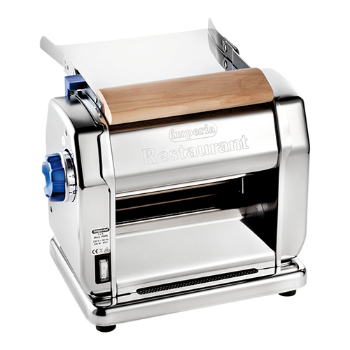 elektrisch, verchroomd gepolijst staal, professionele uitvoering, extra breed uitrol vlak van 22cm, met instelknop voor het uitwalsen van het deeg in verschillende dikten. 220 volt, 190 watt