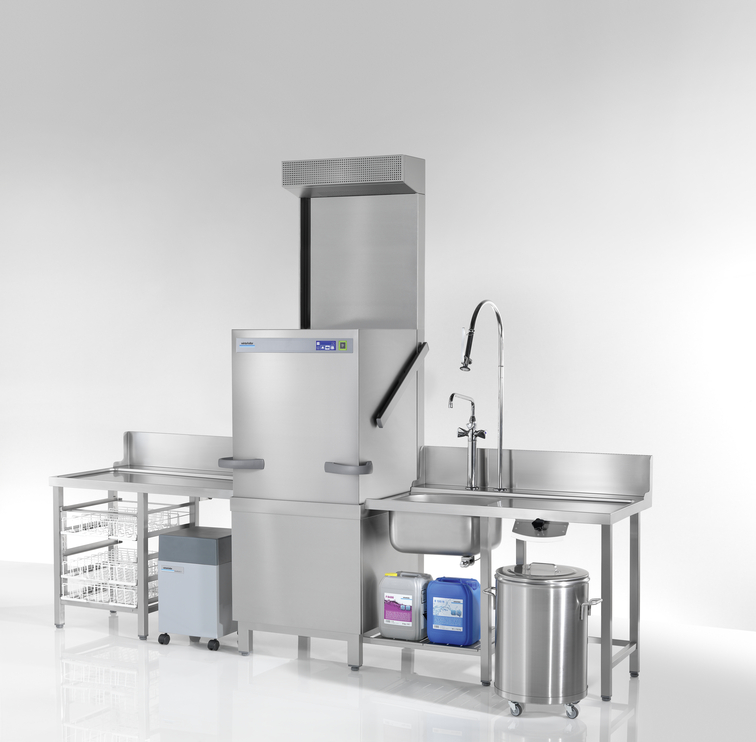 - Een diepgetrokken tank, een hygiënisch tankelement en een hygiënische achterwand voorkomen afzetting van kalk en verontreinigingen. Deze componenten zorgen voor een schoon interieur van de machine. In combinatie met het zelfreinigingsprogramma wordt het werk van het spoelkeukenpersoneel aan het einde van de dag aanmerkelijk verlicht.