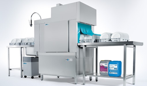 - Een diepgetrokken tank, een hygiënisch tankelement en een hygiënische achterwand voorkomen afzetting van kalk en verontreinigingen. Deze componenten zorgen voor een schoon interieur van de machine. In combinatie met het zelfreinigingsprogramma wordt het werk van het spoelkeukenpersoneel aan het einde van de dag aanmerkelijk verlicht.